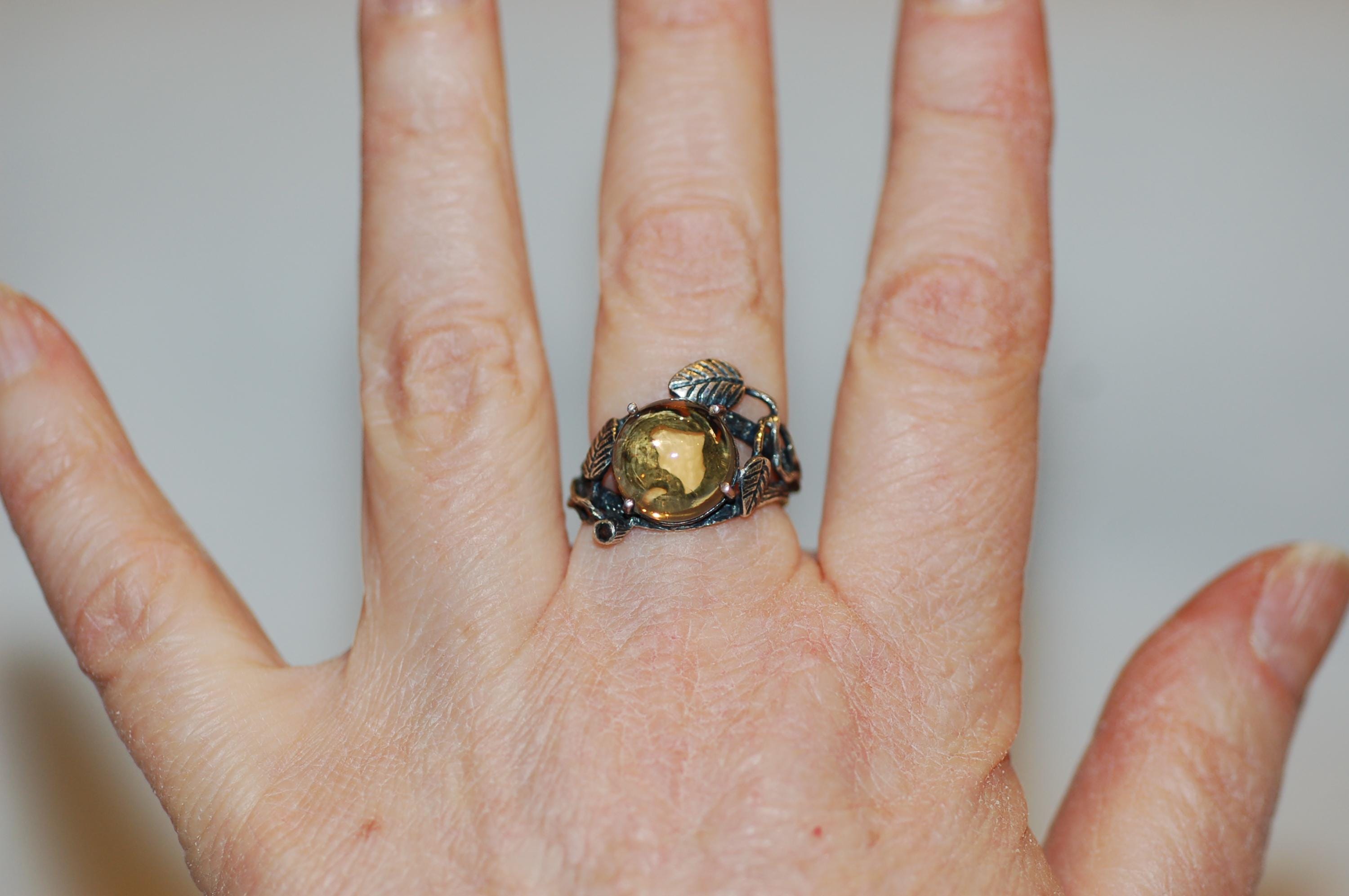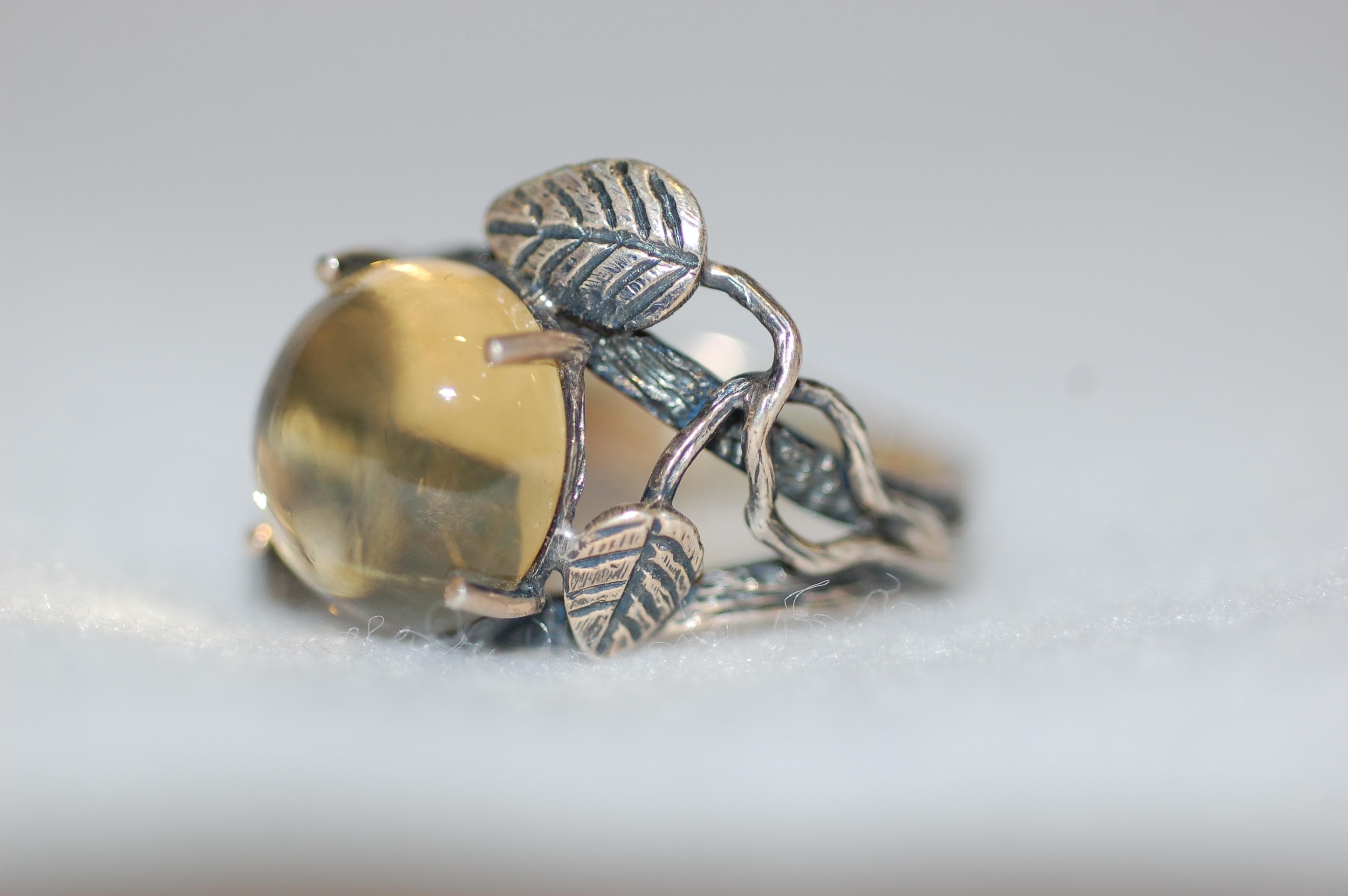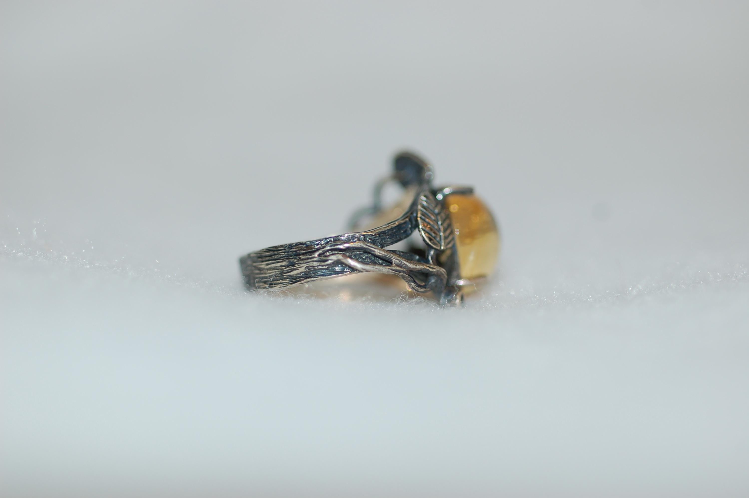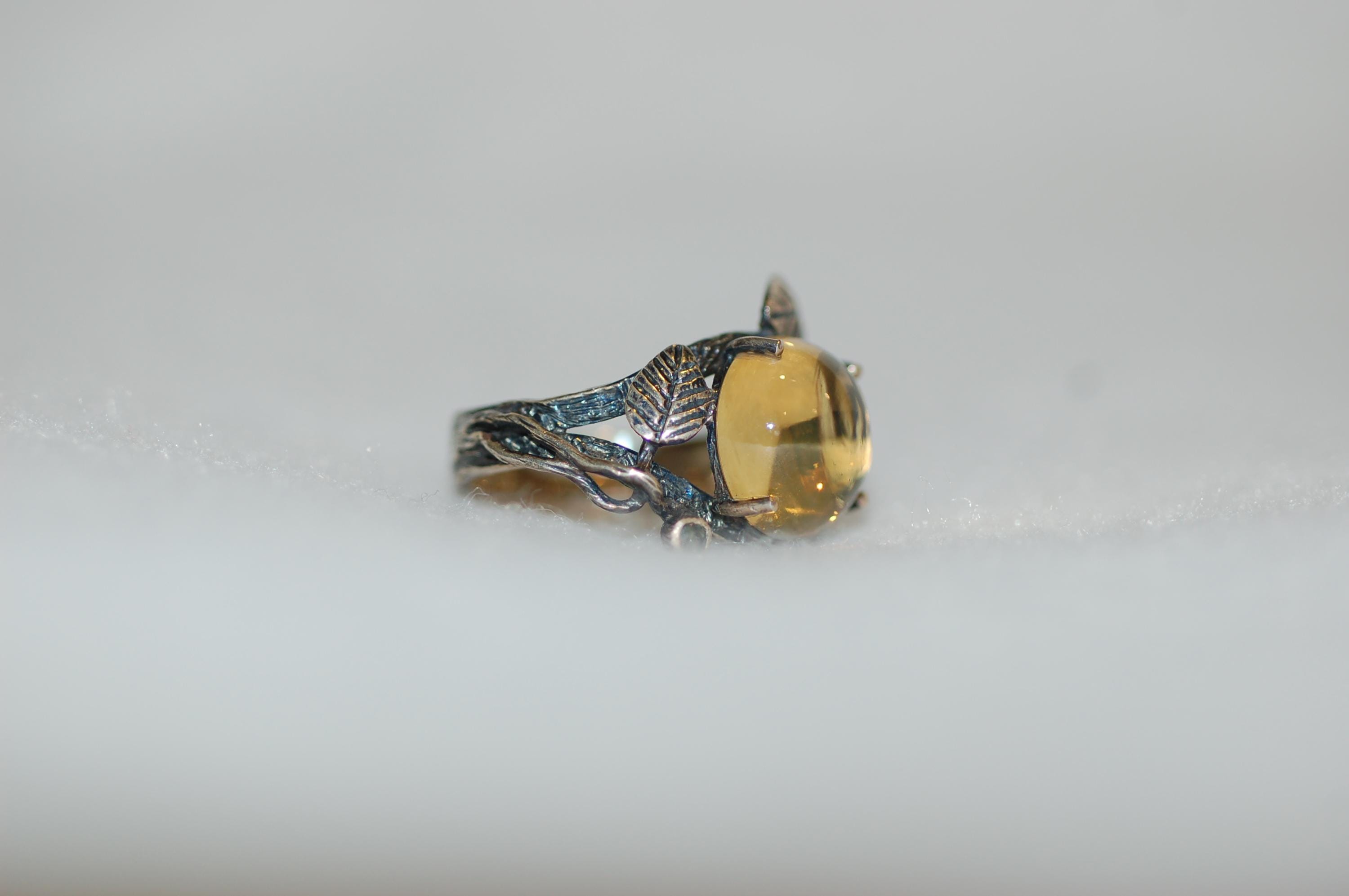 This organic, botanical-inspired ring makes a beautiful statement piece that celebrates the beauty of nature and the warmth of yellow gemstones. Whether you're a lover of nature jewelry or searching for a unique gift, this citrine ring is sure to become a treasured favorite. Proper care involves gentle cleaning with a soft cloth and avoiding harsh chemicals to preserve its radiant glow. Embrace the essence of spring and nature’s elegance with this one-of-a-kind gemstone ring!