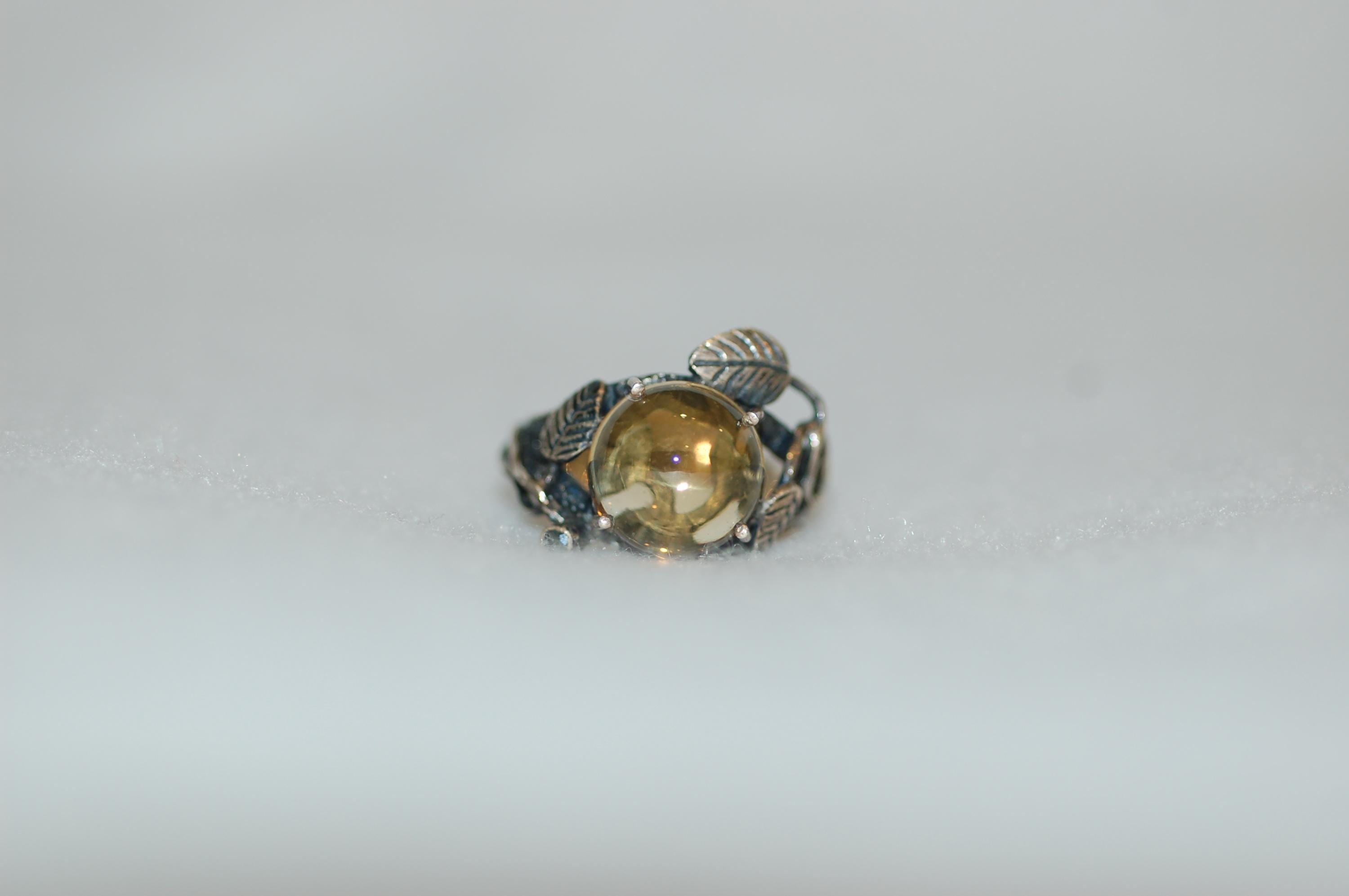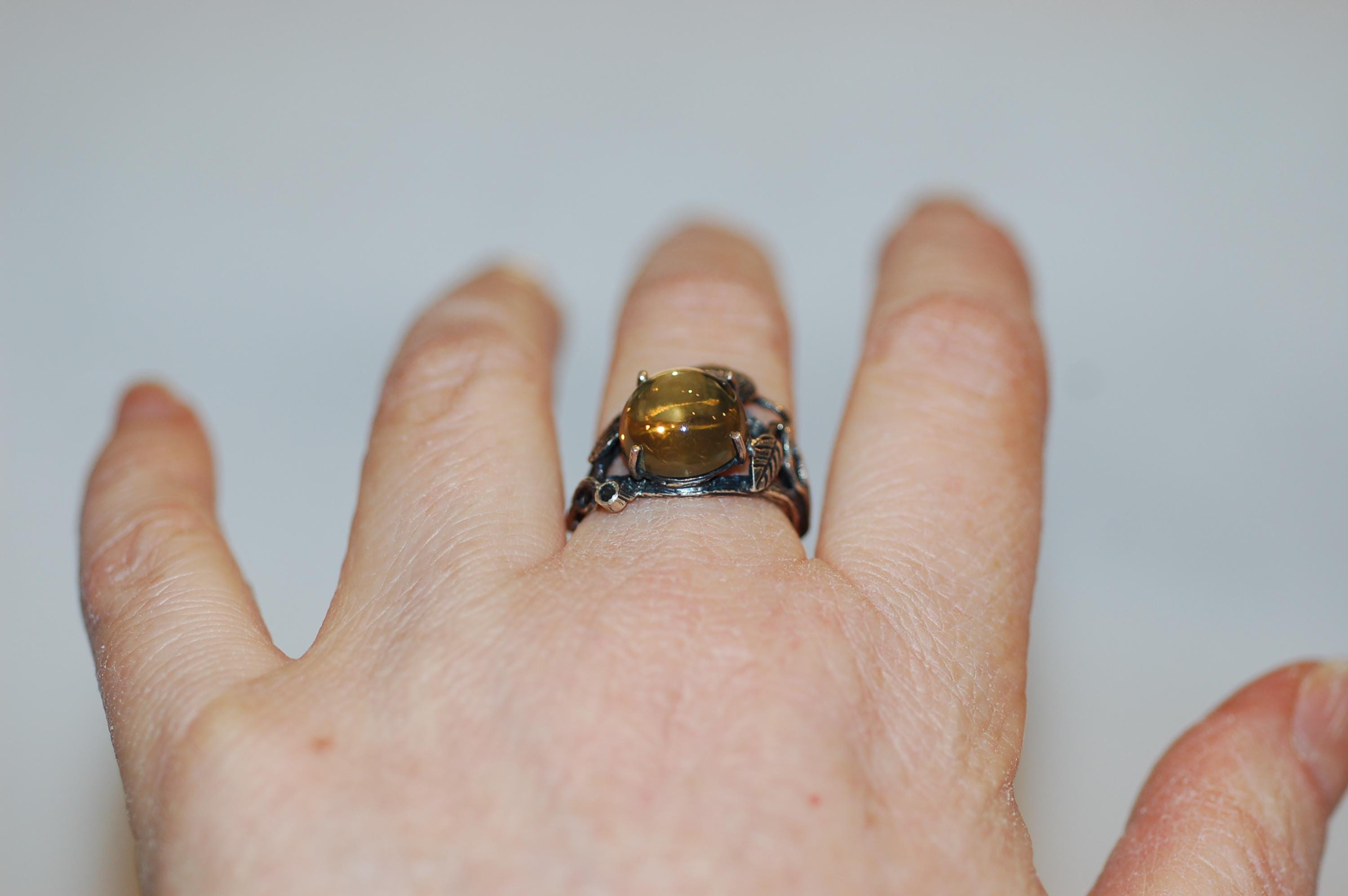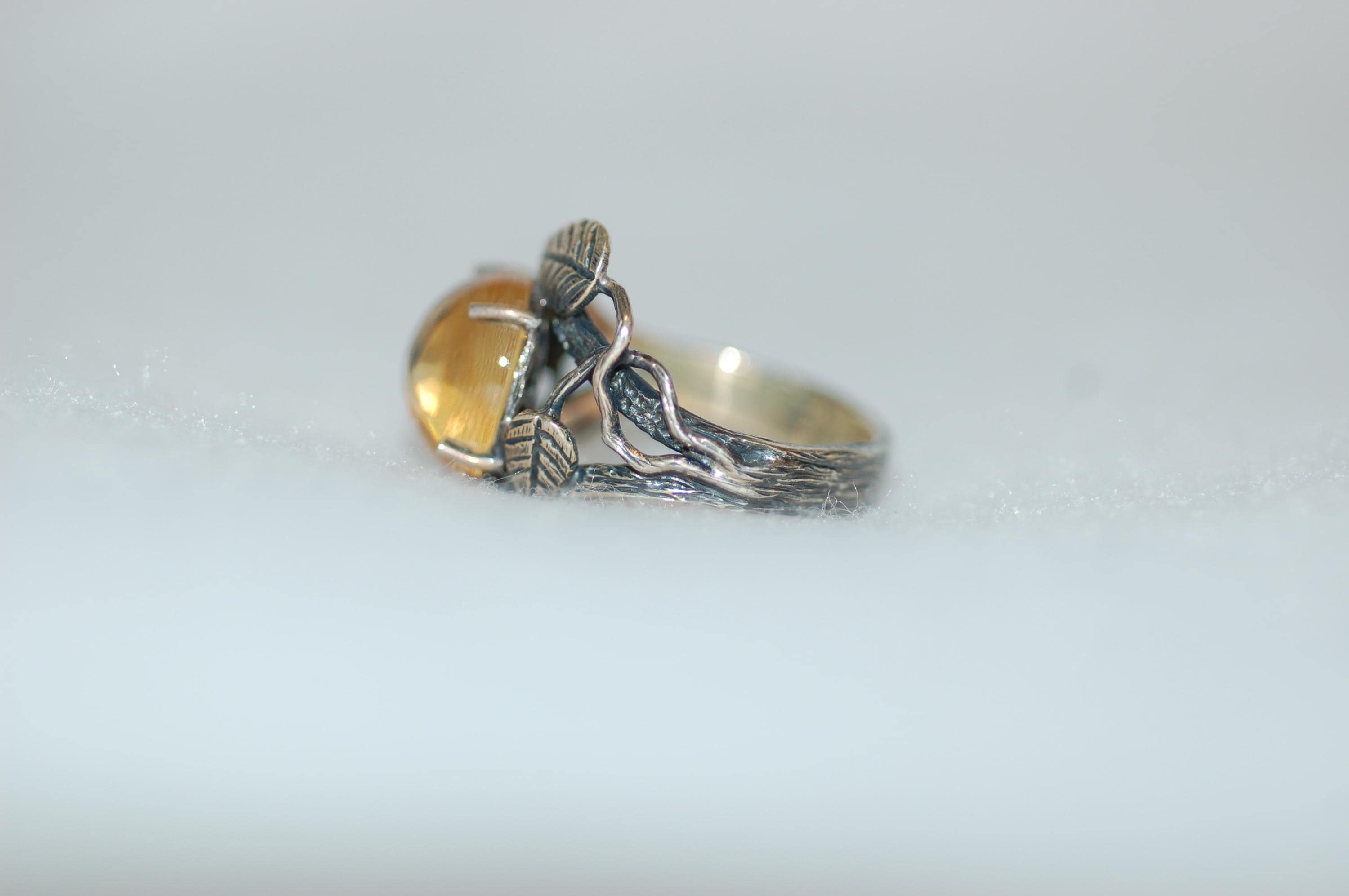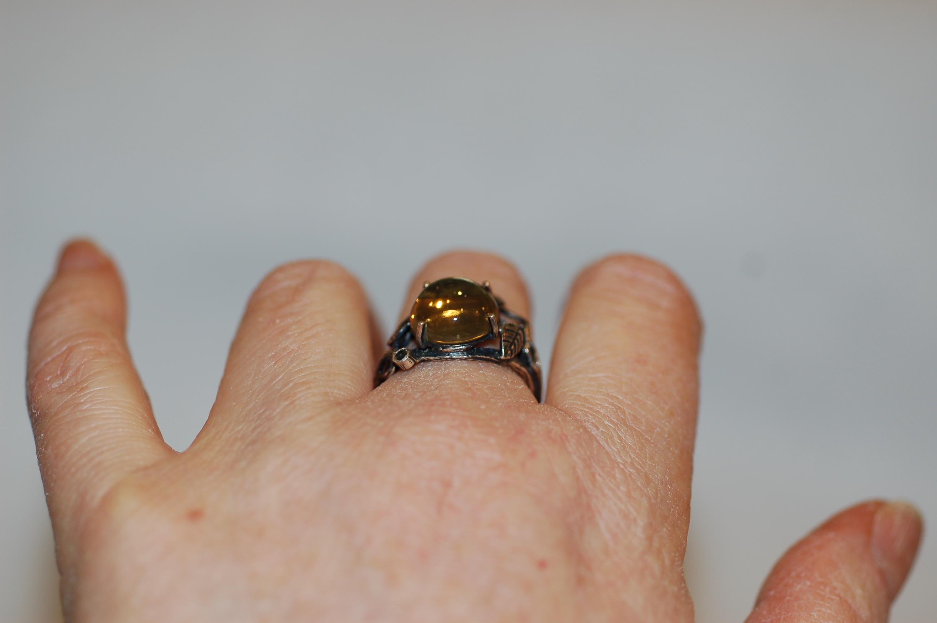 This organic, botanical-inspired ring makes a beautiful statement piece that celebrates the beauty of nature and the warmth of yellow gemstones. Whether you're a lover of nature jewelry or searching for a unique gift, this citrine ring is sure to become a treasured favorite. Proper care involves gentle cleaning with a soft cloth and avoiding harsh chemicals to preserve its radiant glow. Embrace the essence of spring and nature’s elegance with this one-of-a-kind gemstone ring!