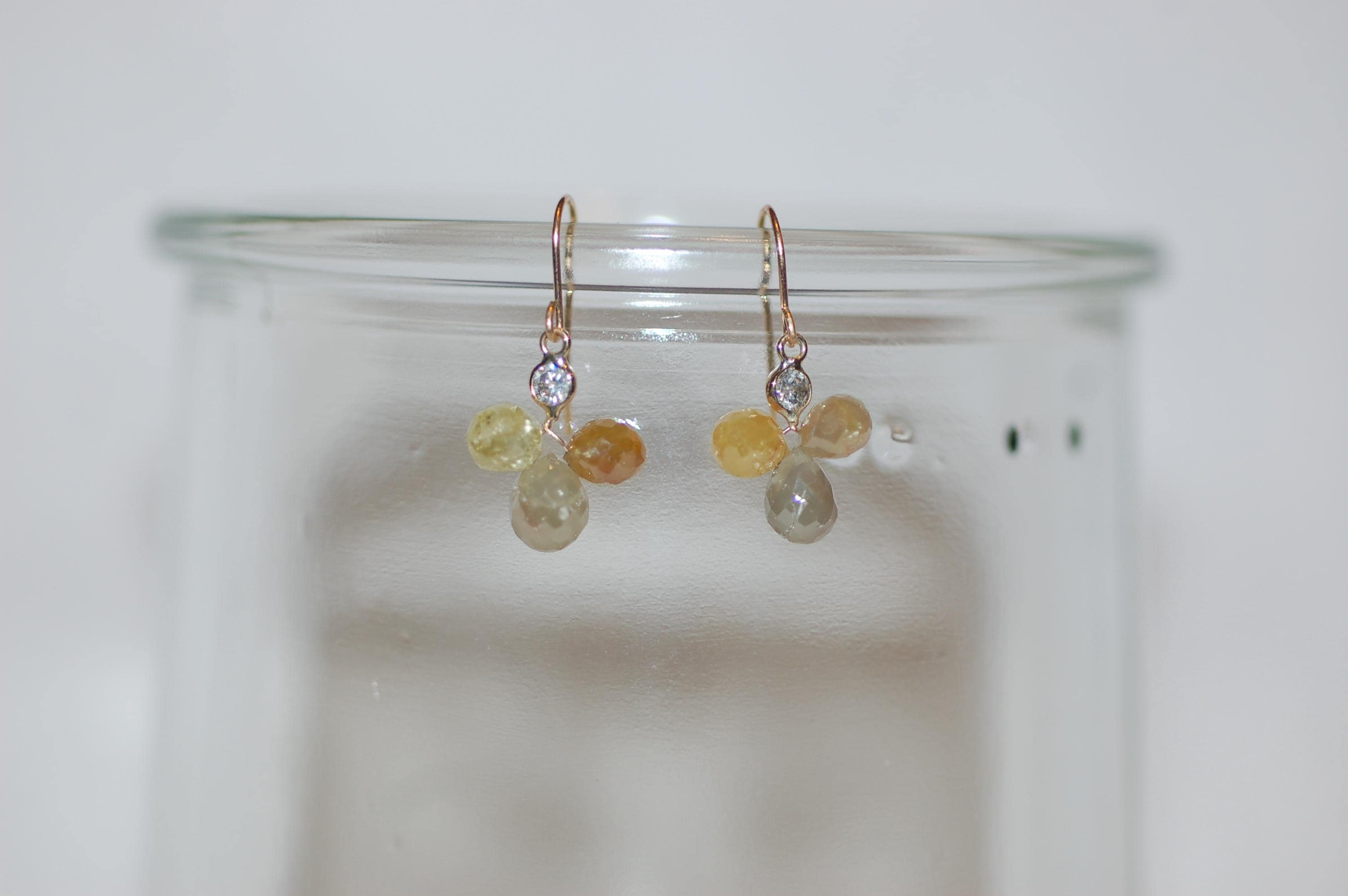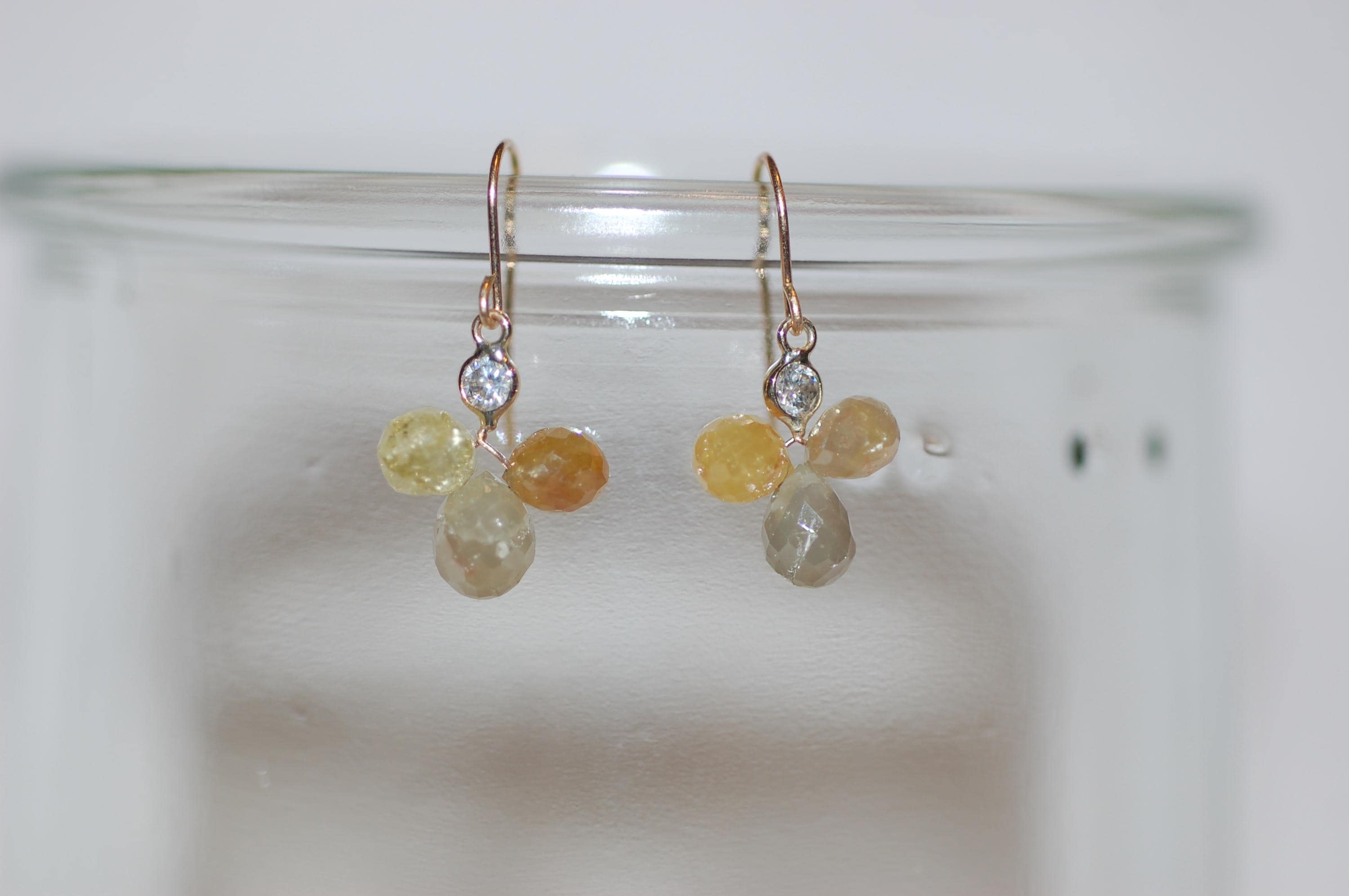 - Hand-selected diamond briolette stones in a delicate array of hues