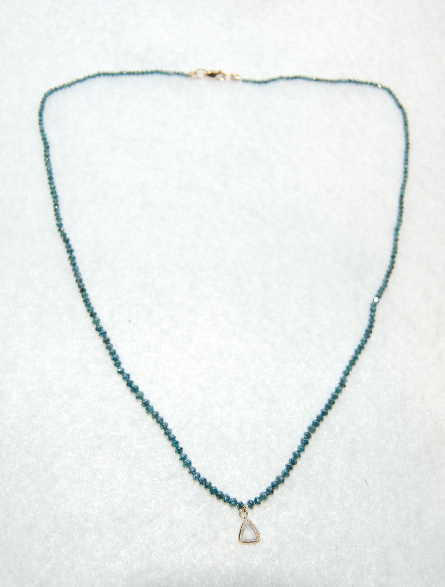 - 13 carats total weight of faceted natural teal diamond beads, offering vibrant color and sparkle