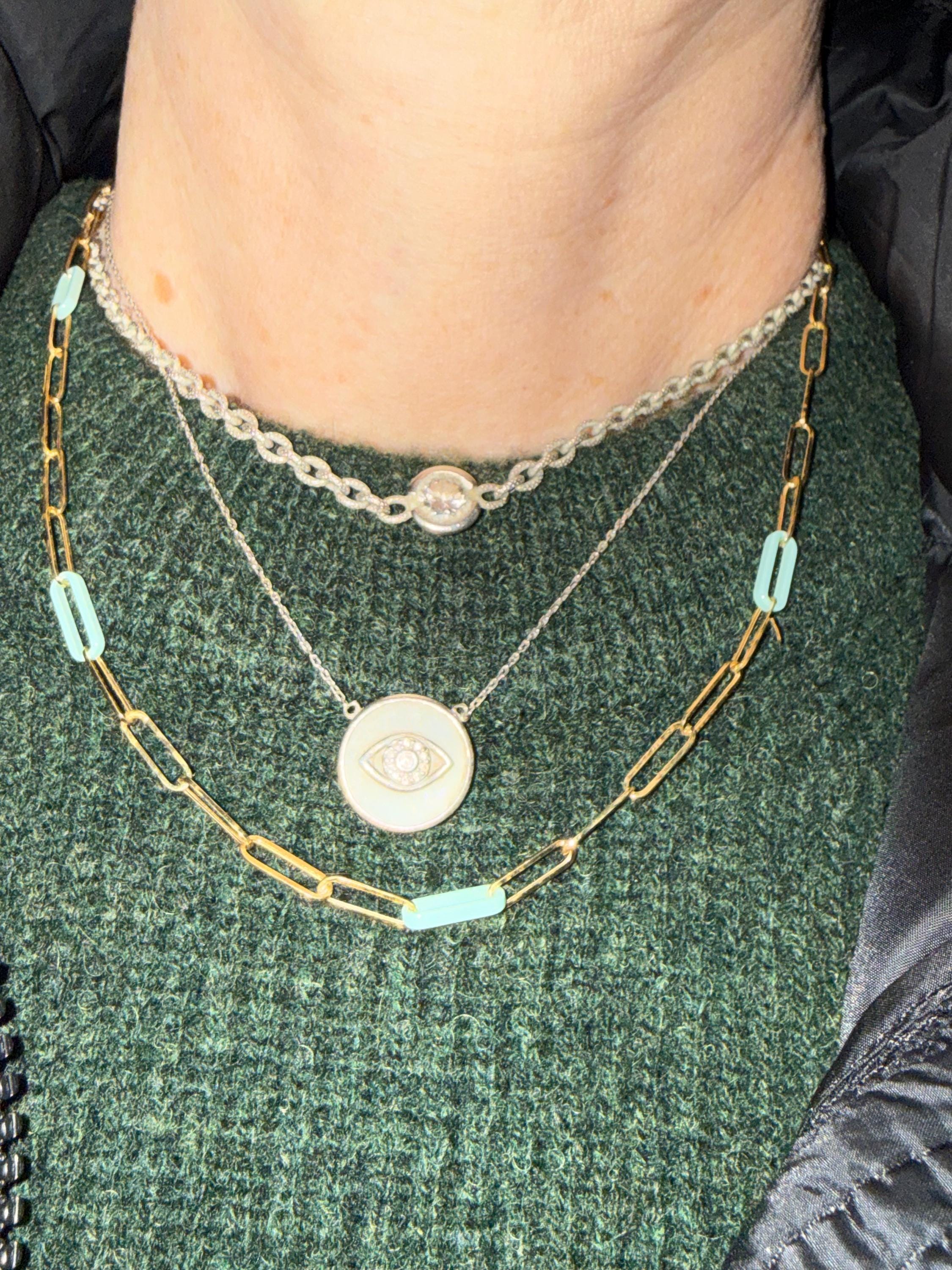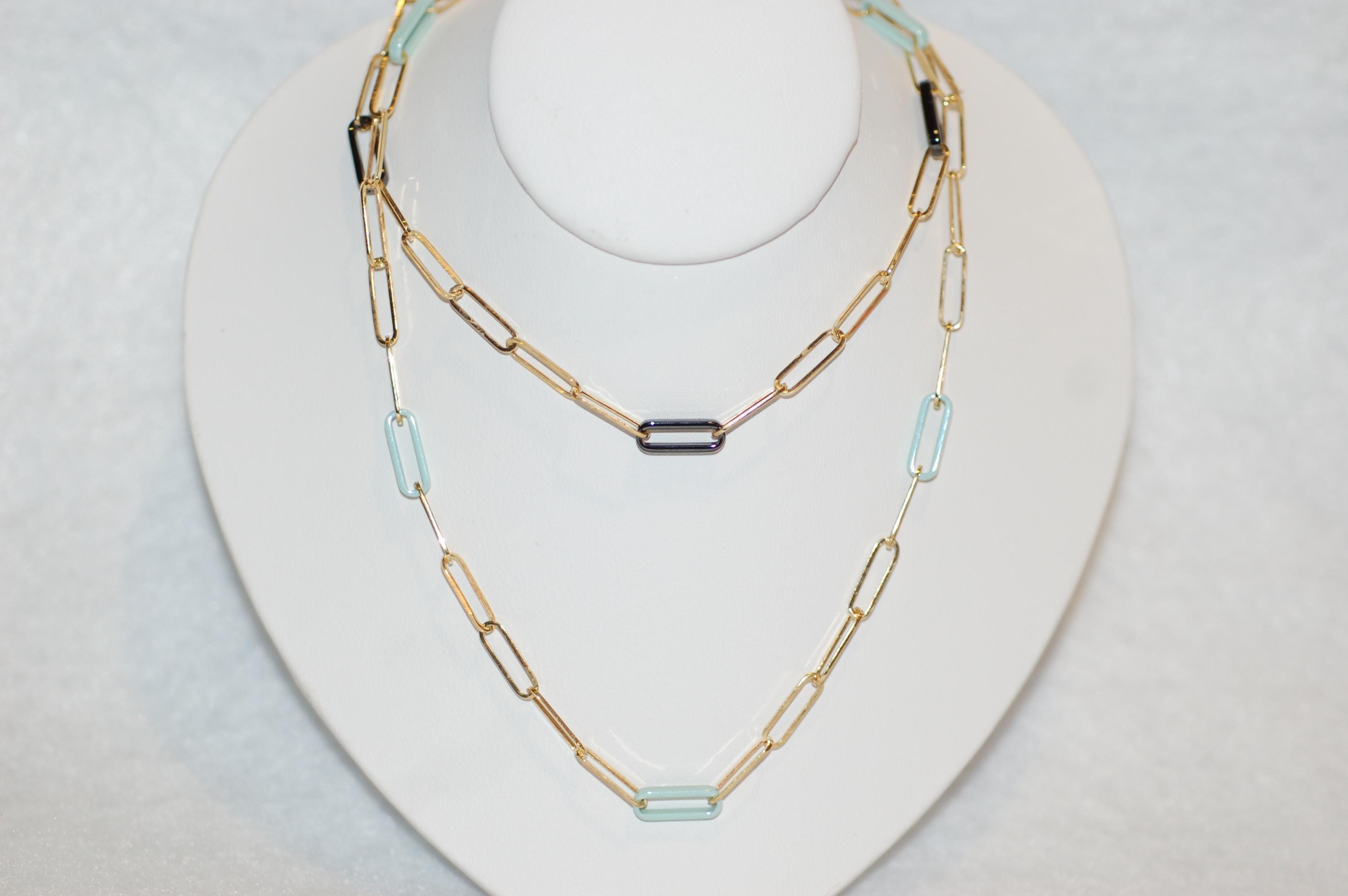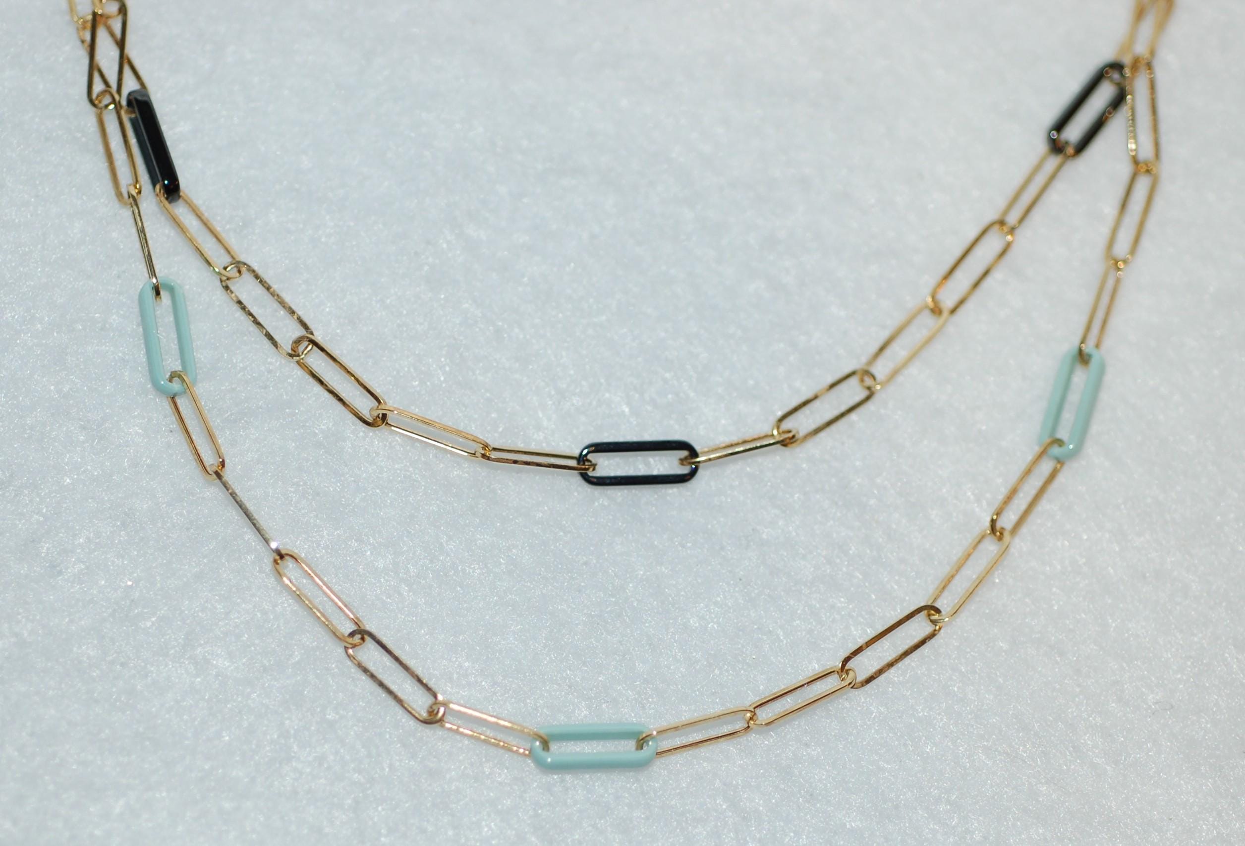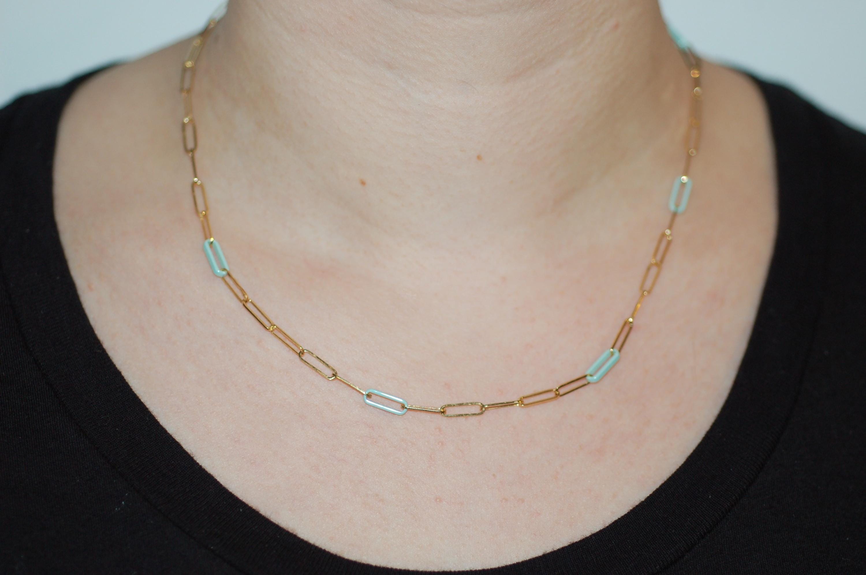 Add a modern touch to your jewelry collection with this beautiful gold and resin chain necklace — a timeless piece with a fresh, contemporary twist!