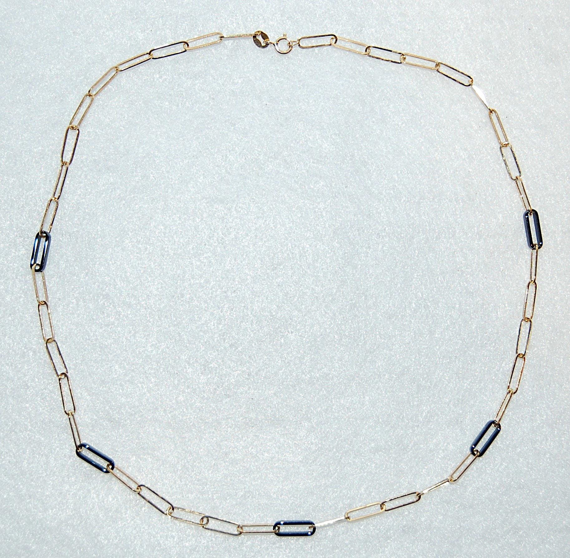 Elevate your everyday style with this stunning 10K Yellow Gold and Resin Geometric Link Necklace. Crafted with a delicate balance of fine jewelry craftsmanship and modern design, this chain features a harmonious mix of sleek gold links and resin accents that add a subtle pop of color. Weighing just 2.3 grams, it offers a dainty, lightweight feel perfect for daily wear or layering with other necklaces.