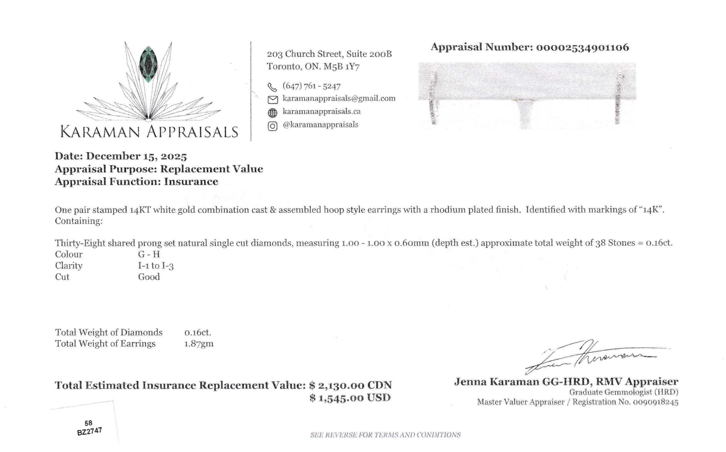 Designed for comfort and versatility, these earrings are ideal for both casual wear and special occasions. The high-quality 14K white gold ensures durability and a timeless look that will last for years to come. Whether you're treating yourself or searching for the perfect gift, these dainty diamond hoops are sure to impress.